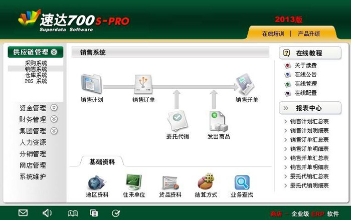 《速达700S-PRO商业版》是一款集供应链、财务、POS、CRM、HR为一体的集成化企业信息管理系统。软件界面简洁,功能完善,有效帮助企 业处理日常经营管理业务,协调业务流转过程。系统融入新一代全局应用技术,支持互联网/局域网多用户应用,支持异地多机构、多店面、多仓库远程应用,支持 数据实时同步管理和移动办公,安全稳定、高速,易实施维护,特别适合中小企业使用。完全符合速达700 PRO商业版设计标准。