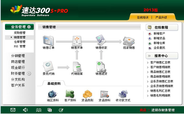 《速达300S-PRO商业版》产品融入新一代SaaS在线应用技术,系统安全稳定、高速高效,特别适合中小企业使用。产品集进销存、财务、本地应 用、远程应用于一体,可有效帮助企业实时管理采购、销售、库存等业务,并动态掌握财务,为企业经营决策提供帮助。完全符合速达300 PRO商业版设计标准。